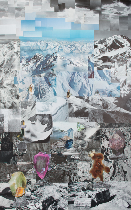Terrain II, 2013. Collage: Buchausschnitte und Magazinausschnitte auf Karton, 160 x 100 cm