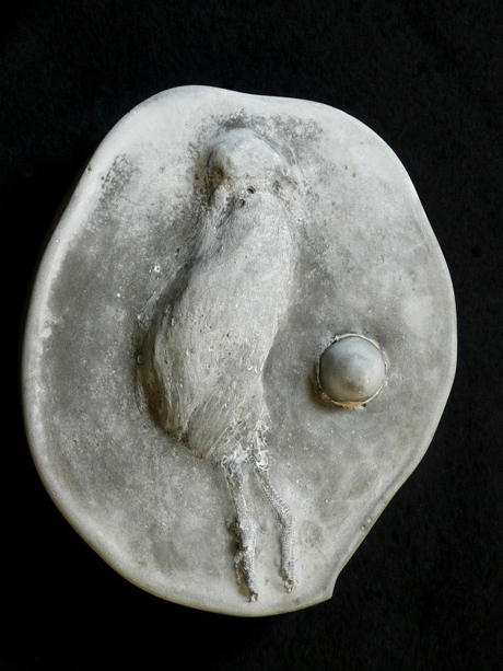 Wachtel mit Ei, 2013. Zement, Nachleuchtpigment, 19 x 16 x 7 cm, Unikat