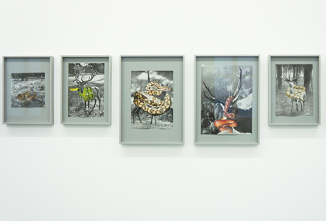 Symbiosen, 2006 / 2009. Collagen: Buchausschnitt auf Buchseiten, gerahmt.