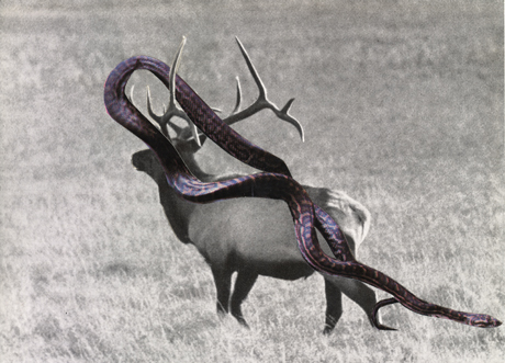 Symbiose (22), 2006 / 2009. Collage: Buchausschnitt auf Buchseite, gerahmt