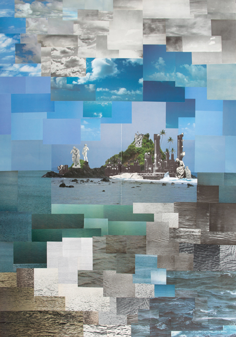 Terrain III, 2013 Collage: Buchausschnitte und Magazinausschnitte auf Karton, 100 x 70 x cm