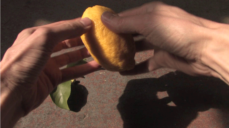Limone/Lemon, 2009 Video DV Pal, 4:3, Farbe, Ton, 6 min. 40 s; Edition 5 + 2AP Integrierter Display, Flashcardplayer, reomote control, timer