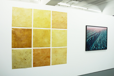 Remo Albert Alig Sacro Bosco, 2012-2014 Fichten-/Kiefern-/Arvenharz auf Papier, 9-teilig, je 60 x 60 cm Jules Spinatsch Snow Management Complex; Spectrum 4, Davos, 2008 C-Print auf Alu,100 x 125 cm, gerahmt; Edition 2/7