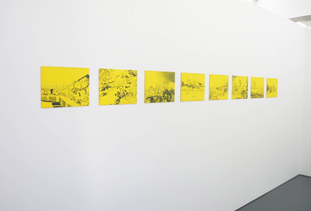 Vie en jaune II, 2016. Öl auf Malkarton, 8-teilig, je 22 x 33 cm.
