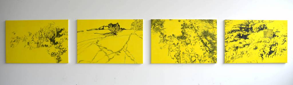 Vie en jaune II, 2016. Öl auf Malkarton, 8-teilig, je 22 x 33 cm.