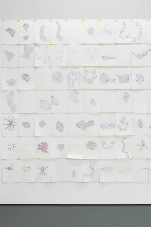 Zeichnungsinstallation 448-teilig; Farbstift, Bleistift, Tusche auf Papier, je 21 x 29,7 cm (Ausschnitt).