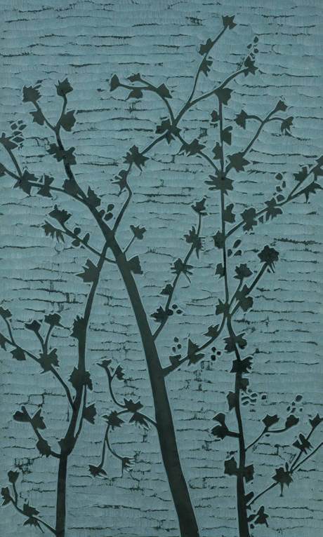 Ohne Titel, 2012. Holzschnitt und Öl auf eingefärbtem MDF, 103,5 x 63 x 5 cm