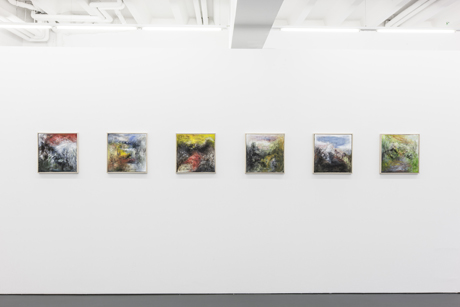 Ohne Titel, 2012. Öl auf Leinwand, je 40 x 40 cm.