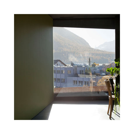 Aussicht M&K Lazzarini Architekten, Gewerbehaus Islas, Samedan, 2012. Fine Art Print, 68 x 68 cm.