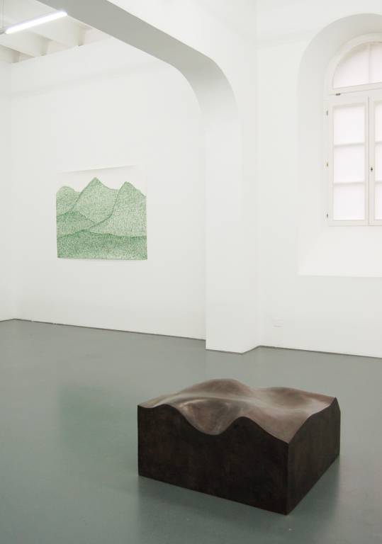 Ölkreide auf Papier, 117 x 153 cm. Bronze, 80 x 80 x 41 cm; Auflage 3 Exemplare.