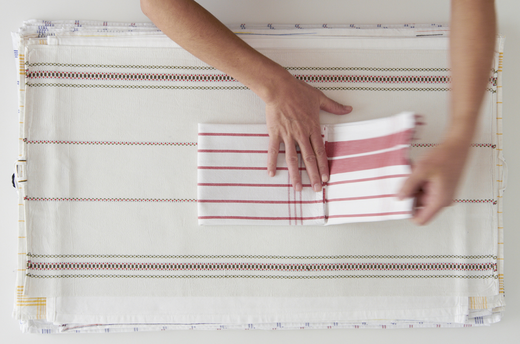 HandArbeit, 2010. Videoinstallation, 5 Min 3 Sek Loop mit Ton. Tisch, Handtücher, 49.5 x 79 x 80 cm