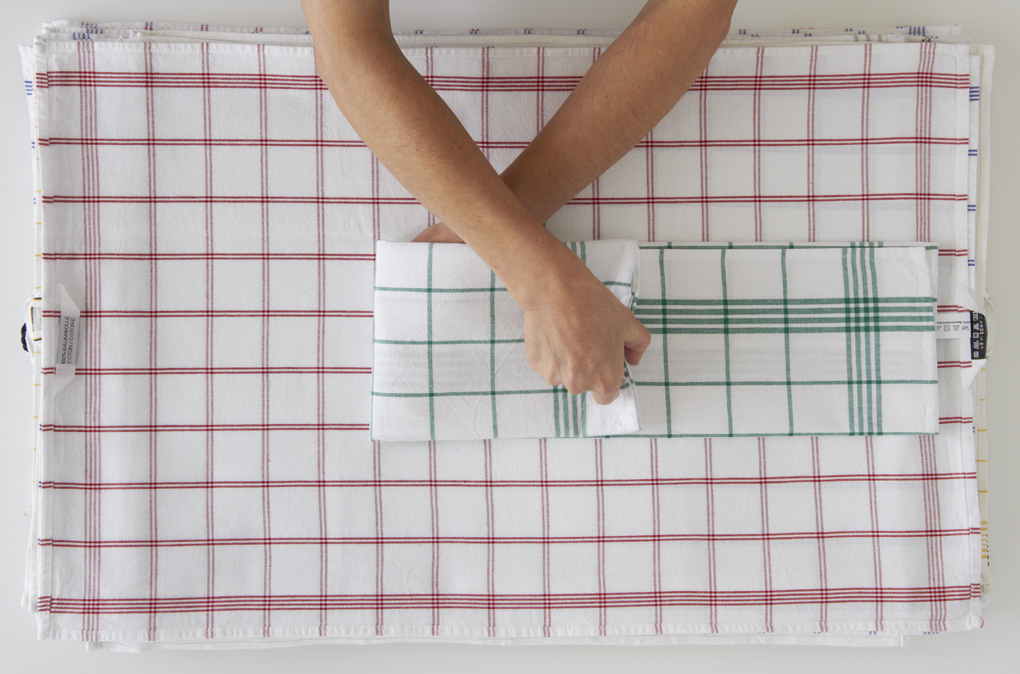 HandArbeit, 2010. Videoinstallation, 5 Min 3 Sek Loop mit Ton. Tisch, Handtücher, 49.5 x 79 x 80 cm