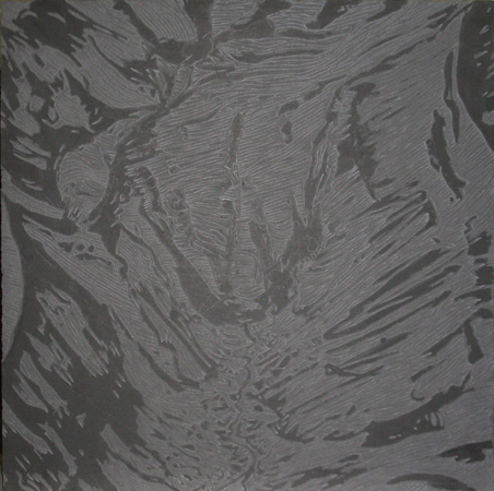 Holzschnitt und Öl auf eingefärbtem MDF, 70 x 70 x 19 cm.