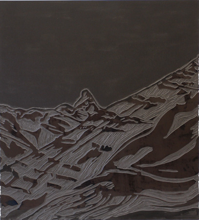 Holzschnitt und Öl auf eingefärbtem MDF, 111 x 100 x 25 cm.