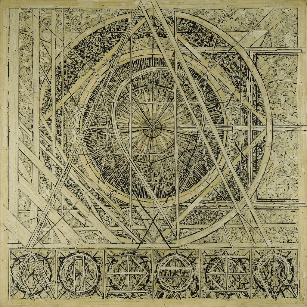 Collage auf Leinwand, 95 x 95 cm