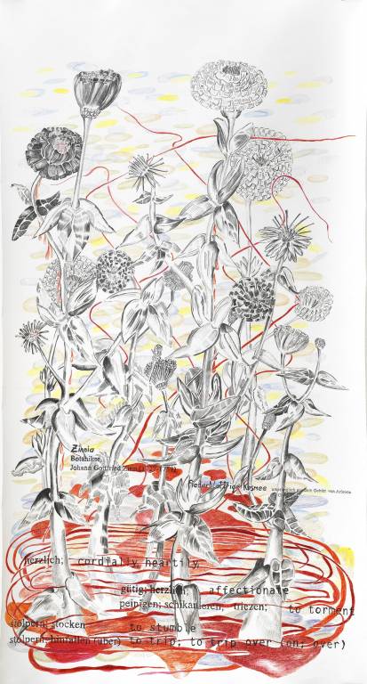 Zeichnung, Bleistift und Buntstift auf Papier, 157 x 84 cm Courtesy: Galerie STAMPA, Basel