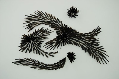 Wandinstallation mit Rabenfedern, Masse variabel.