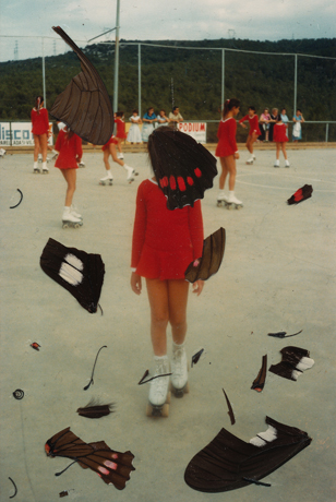 Ohne Titel, (Schmetterlingsflügel) 2011 Collage, Foto (Fundfoto), Schmetterlingsflügel, alter Rahmen, 15 x 10 cm