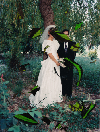 Ohne Titel, (Schmetterlingsflügel) 2011 Collage, Foto (Fundfoto), Schmetterlingsflügel, alter Rahmen Werkmass: 19,8 x 15,2 cm