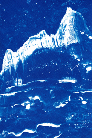 Cyanotypie auf Aquarellpapier, 15-teilig (Auswahl aus mehrteiliger Arbeit), je 10 x 15cm