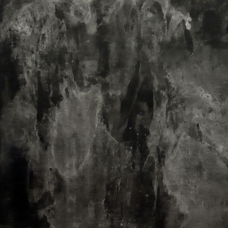 Schwarzpigmente, kristallisiertes Meerwasser auf Papier, 150 x 150 cm.