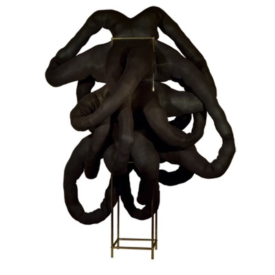 Gestopfte, schwarze Leggins mit Möbelsystem; Unikat, 100 x 100 x 200 cm.