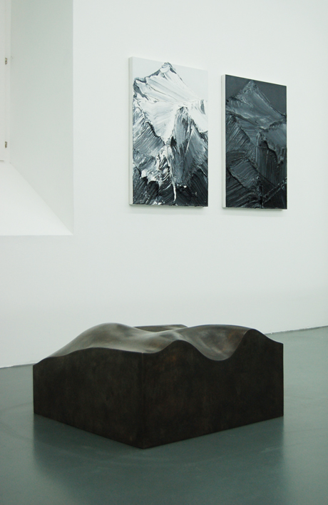 Miguela Tamo. Skulptur 1 (1-6), 2008-2009. Bronze, 80 x 80 x 41 cm Conrad J. Godly. SO ODER SO, 2010. Öl auf Leinen/Baumwolle, zweiteilig, je 100 x 70 cm