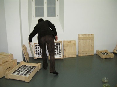 Intervention: Langer Samstag, Samstag, 10. November 2007, um 22:30 Uhr, Dauer: 1/2 Std.. Spraylackfarbe auf Wand, Masse variabel.