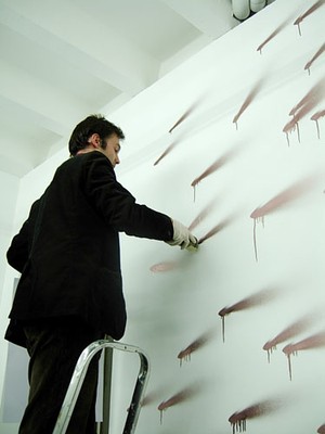 Intervention: Langer Samstag, Samstag, 10. November 2007, um 22:30 Uhr, Dauer: 1/2 Std.. Spraylackfarbe auf Wand, Masse variabel.