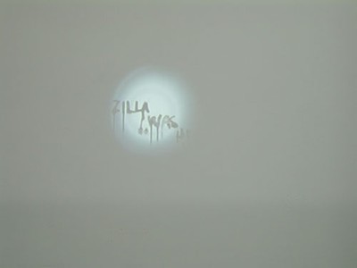 Videoinstallation mit Betonsockel, Projektion, Taschenlampe, Projektor, DVD, Digibeta s/w, ohne Ton; Unikat.