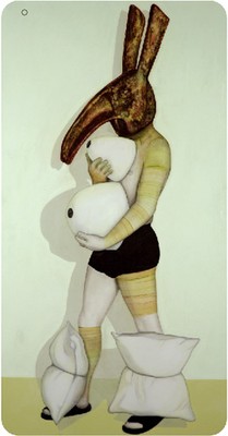 Öl und Paraffin auf MDF, 206 x 109 cm.